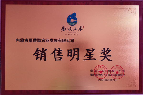 2020年在中國農(nóng)業(yè)博鰲論壇暨第七次世界小米大會(huì)上獲得“銷售明星獎(jiǎng)”